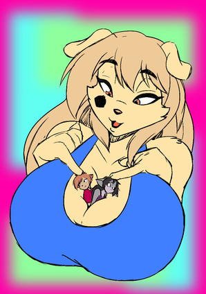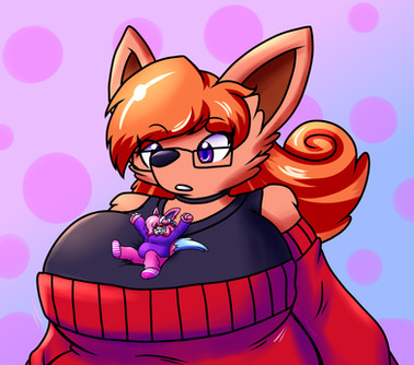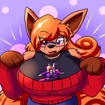 I recently teamed up with on quite a few commissions featuring various original characters of ours. In this particular piece, we have my OC, Ms. AMP, giving a Mini-Shaze a nice place to rest…between her cleavage. For those that don’t follow, Shaze enjoys resting in the cleavage of various women! Sure doesn’t seem that Ms. AMP mind helping out her little friend.