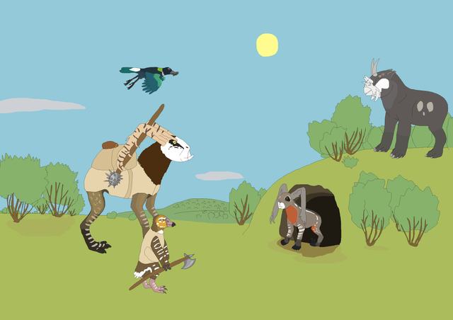 The armox´s role is similar to that of an elephant, the social gravediggers don’t eat their meat, they are used to pull ploughs, and other than that they can graze in herds on the green pastures. They are treated well. The Antlear people keep few of them, as they are large and need much grass to be maintained, so villages exchange armox every few cycles(=years) to prevent inbreeding.
