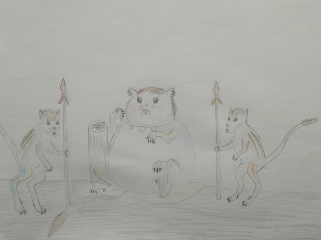 On the left you have the burden Tuskbeast (Basically a Burden Brute). Its Tusks are quite short, because a beast of burden doesnt need long tusks. This combined with the flat face gives it a lystrosaurus like apperance, which is at least somewhat less horifying.
