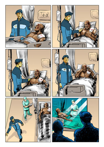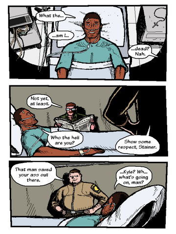 This is the "human side" of my comic [link] coming out. I love drawing tanks and planes and armored suits but it is really intended to be a human story. The first and third panels are ones I'm really proud of - I really feel like they conveyed the body language of their respective moments just as I wanted them to. I don't know if any of you have ever had to sit around and wait while someone you cared deeply about was in a fight for their life. But I have. Several times. And it feels a lot like this. They say you can only write what you know.Related content