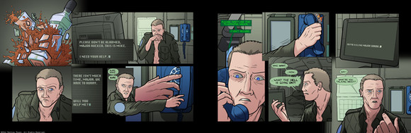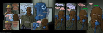 The next two pages of 6-Commando. [link]This is one of my favorite scenes, so far. The way Rucker muscles the junior officer came off really well, I think.