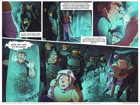Thanks to you (and everyone else) for the support! I usually post a spread on DA every two weeks, but I do a page every Monday on my website for the comic ([link] ). That's the best place to follow along. If I could find a way to do this full time I'd do a page a day, but, well, you know how it is. It took me the first two chapters to really warm up but now I'm on a roll!