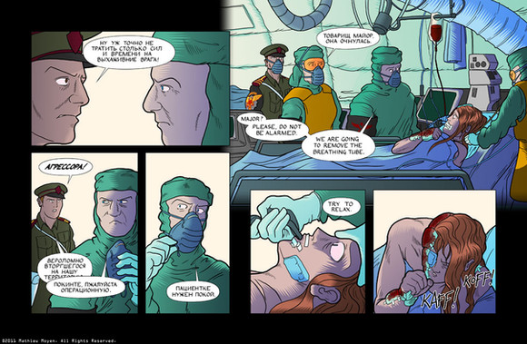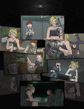This set marks a real turn in the story - a turn towards the weird and inexplicable. It's also a direct jibe at a friend-cum-critic of mine who once said offhandedly that I always draw military comics because the uniforms keep me from having to draw real anatomy.So THERE.