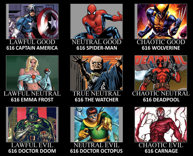 This is my very own Alignment ChartThis is an Alignment Chart filled with my favorite characters from comics and sci-fi