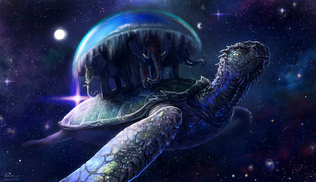 #earth #flatearth #midgard #moon #serpent #space #sun #surreal #turtle #world #oilpainting