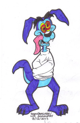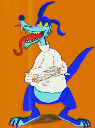 Yep! It's Ripper Roo, the maniac kangaroo from "Crash Bandicoot". (It's funny, because all my life I though he was a dog, and confused me, thinking he was a rabbit >:c )Well, I don't know what to say in this drawing, only that I wanted draw him xD He is one of my favourite bosses and characters of Crash Bandicoot games (when the game was good...). I remember the race against him on CTR, damn TNT boxes.
