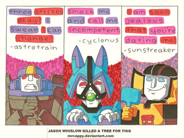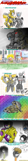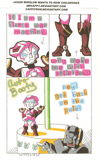 UPDATE: Hey transfans! Do you like my Transformer humor, but can’t understand why I taint the rest of my gallery with filthy hyooman characters? I’ve opened up a NEW gallery that’s one-hundred percent robot rousings. Transformer jokes will still be uploaded to this gallery as well, so if you like my general jokes then there’s no reason to watch the other site. So if you’d like to follow along Optimus and gang thru transfunny misadventures, head on over to Cappitron!cappitron.deviantart.com