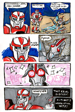 About the art. Remember kiddies, if you’ve never drawn robot chibis before…you may wanna practice on a separate piece of paper! The last panel instead looks like I have serious anatomy issues. But whatever, I now leave to the transfan community the idea of an ‘Auto-Booty’ strip club somewhere on Cybertron.