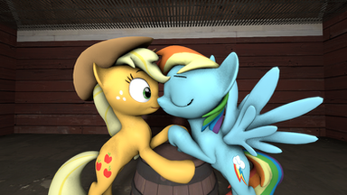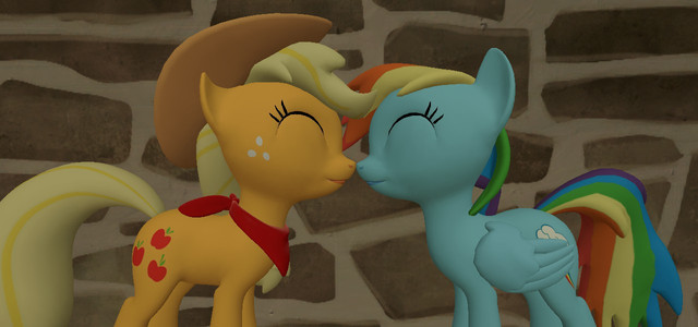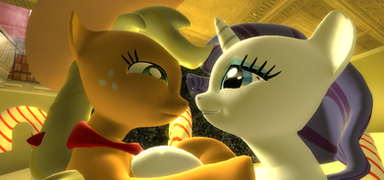 Rarity and Applejack posing for a quick picture before they head off for their Hearts and Hooves Day dinner date.Related content