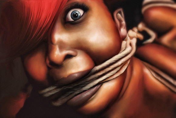 We are very fortunate to get invited to do a lot of performances at fetish clubs and the like as part of our show. Through these we meet some great people who want portraits done, and that's fairly well the inspiration for my fetish art. I admit that sometimes the whole thing just becomes a big tedious exercise, especially if the subject is not particularly interesting. It's hard to make a silk purse out of a sow's ear (or as they say in the classics, you can't polish a turd).