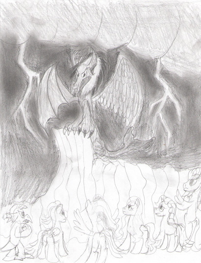 Fanart of Anarchy checking off his list of "flat" ponies. More work put in the head because I can NOT tell the difference between the legs of a dingo, fox, or coyote.Inspired by 's pony POV series.
