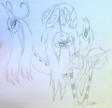 And now I realize that draconequus Loneliness's pointy ear looks like a third horn.