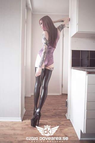 #fashion #fetishfashion #highheels #latex #naturallight #tattoo #redhaire #latexfashion #missmandy #latexstockings #dovearea