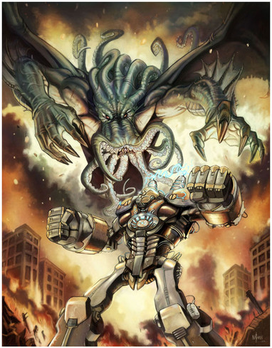 Amazing artwork, loving the giant monster/robot battle, am a big fan of that genre