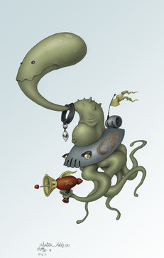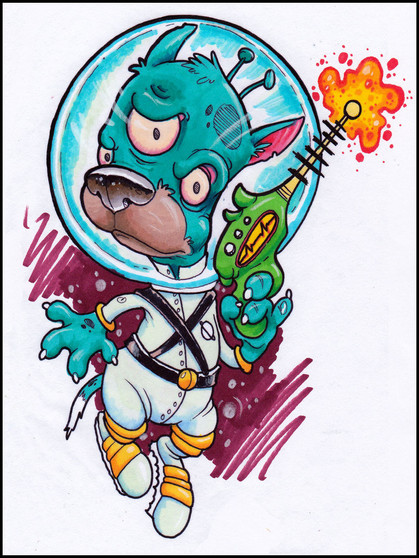 The alien kinda resembles the style of whoever draws Spirou. Or Sergio Aragones.