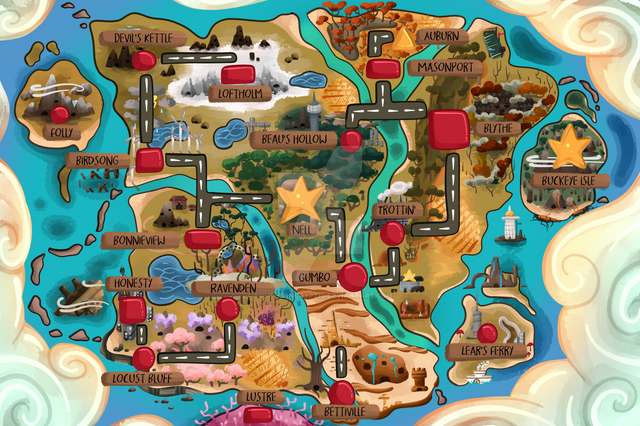 I love graphical maps as well. I absolutely love the emblems for each region you have. This would make an awesome world for a side scroller or an action rpg.