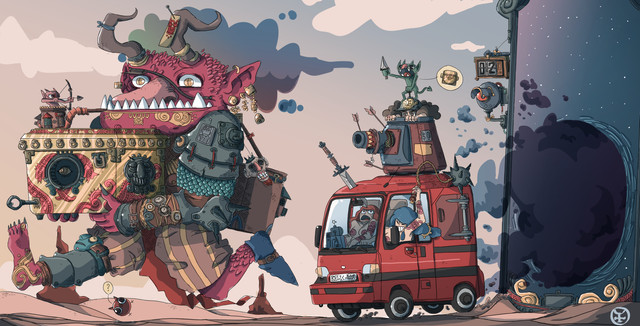 Haha, awesome. I love the little guy mounting a gatling gun inside the flower petals.