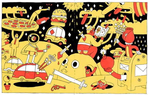 What I love about your work is that you can have a million and one things in your compositions and it never comes out too crowded or ugly. It reminds me of Sergio Aragones work in that regard.