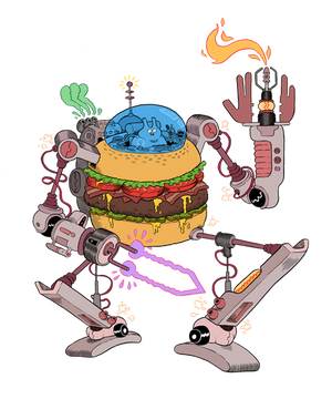 I like it! It's great that you go along with these kind of idea. It doesn't need any kinf of explanation behind it or anything to be interesting. Also, nice Alex Pardee homage withe the Owlman Warrior Thing.