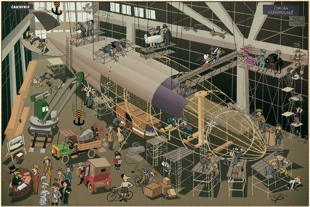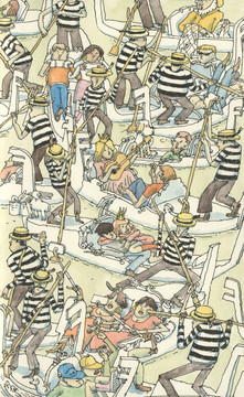 whoa, this one is sooo good ! I love illustrations that are funny and stacked so you can look at it for a long time with your mouth wide open and after a while still find new things. Lovely coloring as well, although a steamboat is often brighter and prettier that way, but I understand the contrast with the white sailor-suits was necessary.
