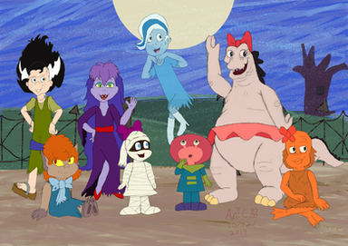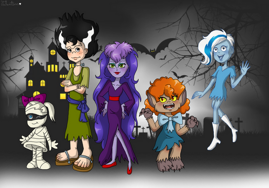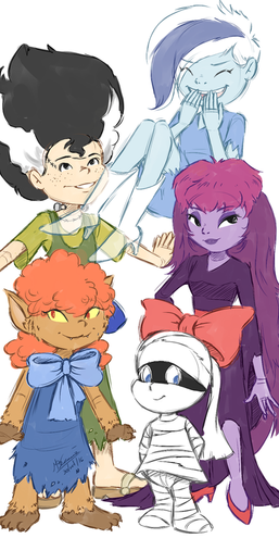 Another commission from artiecanvas, here, the ghoul babies are being potty trained. Poor Tanis is so embarrased, Winnie I guess doesn't know what to make of it, Phanty must be trying to concentrate, and I guess Sibella and Elsa must've succeeded in doing their business. This is meant to be innocent, just getting away from the foot fetish stuff for now.art by artiecanvas