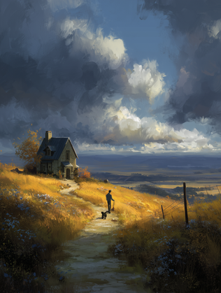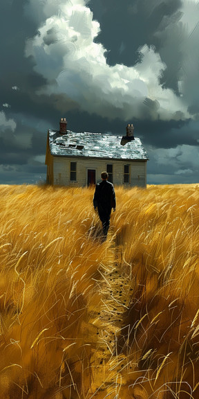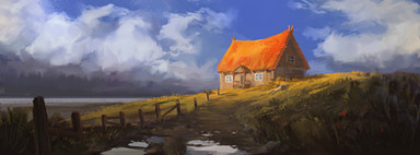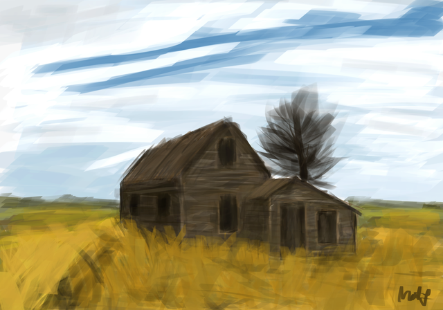 #conceptart #digital #digitalpainting #grass #landscape #painting #photoshop #photoshoppainting #scenery #clouds #horse #house #plains