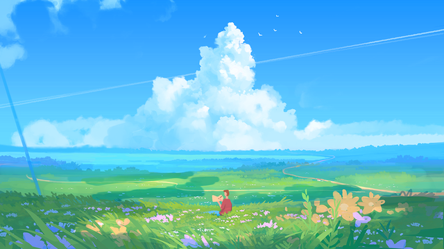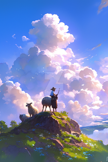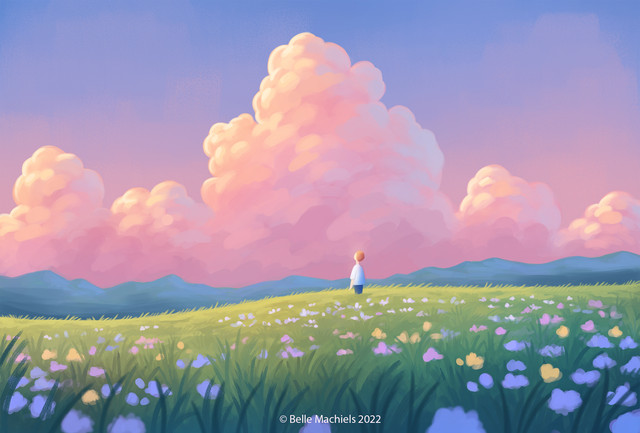 #clouds #digitalpainting #fields #flowers #illustration #landscape #photoshop #sheep #shepherd