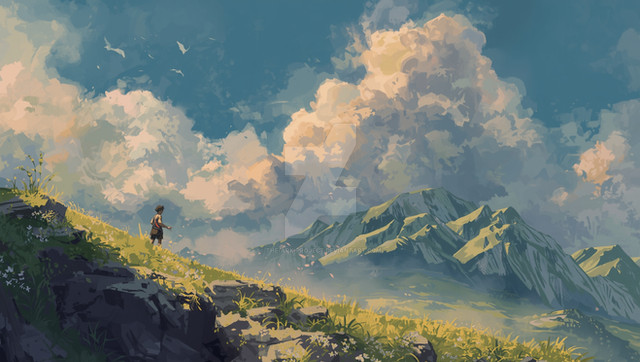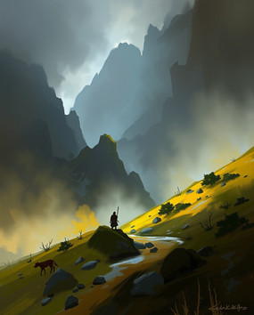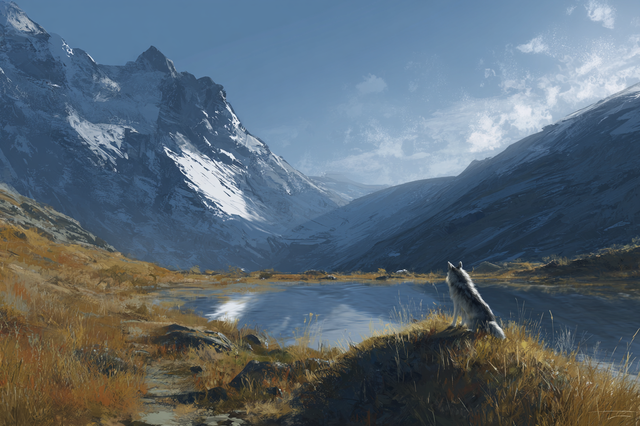 #digitalpainting #illustration #illustrations #lake #mountains #photoshop #sheep #shepherd #illustrationdigital