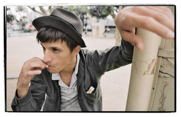 I love the cold coolness of the colors with the man contrasting with the, almost, painty-colored background.