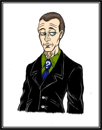 Cool look for Riddler. Much more subtle for him rather than the bright green and purple suit with a question mark cane and bowler hat. He strikes me as someone who let's his intelligence rather than his physical look speak to what kind of villain he is. Good idea with picturing Riddler as a Saw type of villain, he really fits a role similar to Jigsaw.
