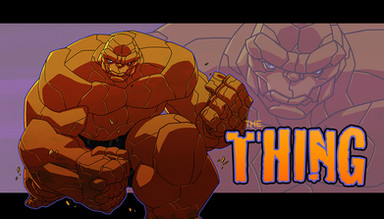 For Ben Grimm there isn't much to update. I cleaned up some of the ridges a bit from the main character and made him appear nearly smooth in comparison. I added a painted "4" on his chest as is seen in some renditions of the character. His powers are iconic and left alone as being near indestructible and very VERY strong. I toned down his oranges a little to give him a slightly more rocky feel to balance out his smoothing.Related content