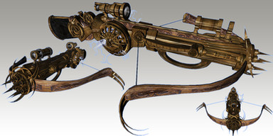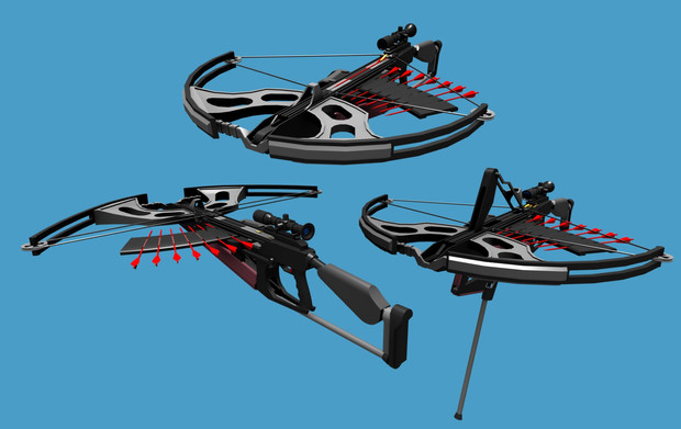 2. I see it working out more like a bolt action due to the fact you have to "cock" (pull back) the bowstring. Like the idea and look, but I find it hard to picture the slide mechanism lifting an arrow/bolt up as it pulls back the string. But who knows.