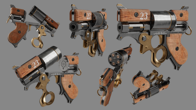 The only problem I see with this weapon is the hinge location on the break action. How would you reload it comfortably? You'd have to flip it over, rotate it, open it... etc.