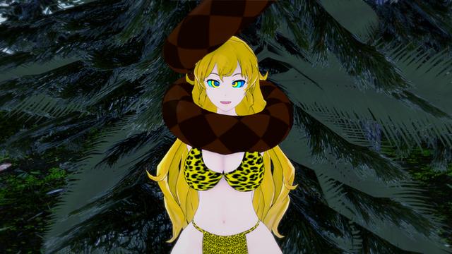 As her resistance began to deteriorate, Yang felt something begin to shift around her. The coil around her stomach was slowly becoming two as Kaa's tail glided around the jungle girl's form."And to think that you were so confident that you could get free of my coils, free of me... How stupid of you Yang, silly jungle girl..."