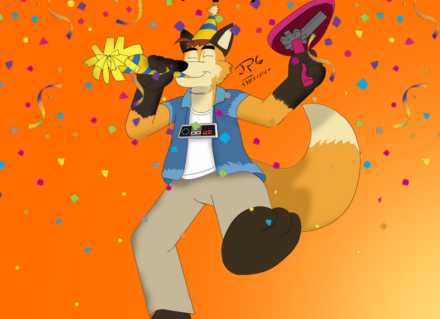 #fox #mrkooltrix #2022 #anthrofox #anthrofurry #anthropomorphic #birthday #birthdayart #birthdaycake #musician #anthrocharacter