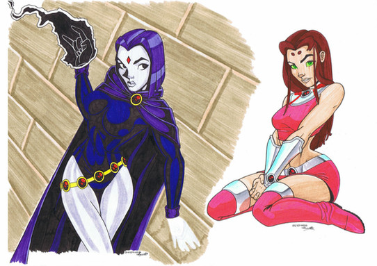 Starfire of DC Comic's Teen Titans and Storm from Marvel's X-Men. By Long and posted with permission.Related content