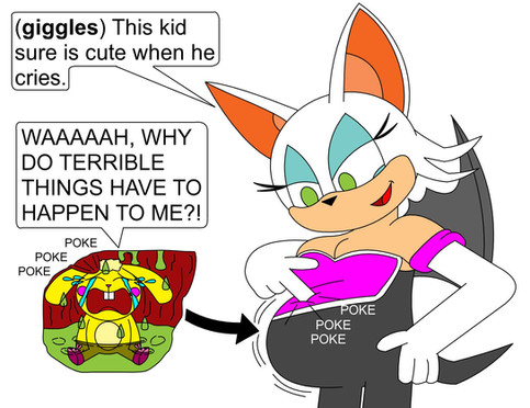 From now own, gadget will remain to appear in sonic games as rouges belly boy ☺️ He’ll like his new home eventually~Art trade with @Demonfuneral123