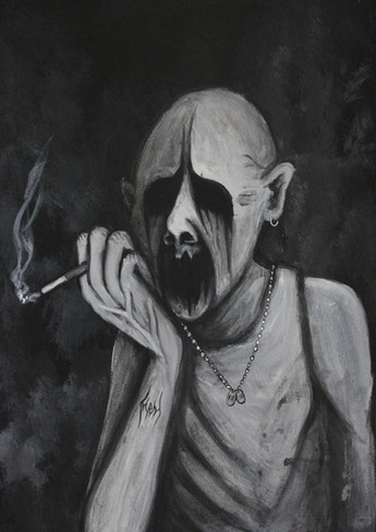 #darkart #horrorart #miserable #morbidart #pain #painting #portrait #sadness #smoking #art #acrylicpainting #artwork #blackandwhite #blackmetal #cigarette #darkartists #darkillustration #horrormacabre #arttraditional #acrylictraditional