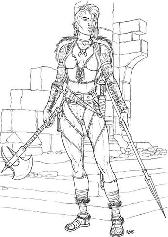 Not your typical elven lady -- that hair is too cool.