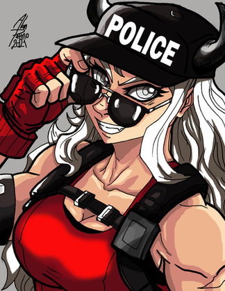 #abs #bigboobs #bigbreasts #demon #demongirl #fanart #sunglasses #sunglassesgirl #helltaker #hornsgirl #demon_tail #horns_girl #sunglasses_girl #helltaker_justice #helltakerfanart #justice_helltaker #mrwolfartworks #helltaker_art #musculargirl #policegirl #muscularfemale #whitehairgirl