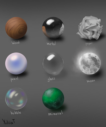 I try to draw various textures... I see that some of them is not perfect as I want too, but I will be study hard and try to make it better!I used tutorials and refs from youtube, pinterest, vk, twitter... (All that google shows me).
