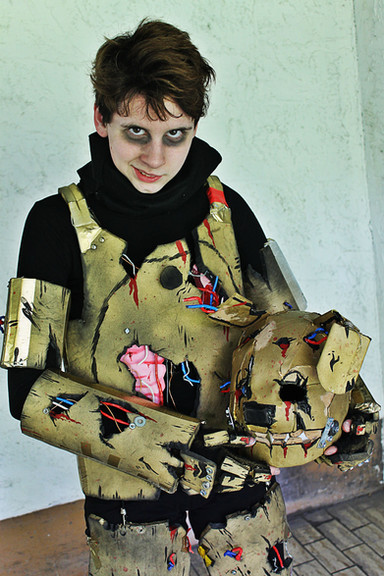 Yes yes. It's a little late for Halloween stuff. Deal with itWent as Springtrap from the Five Nights At Freddy's games. My brother is really into the games and he had me try out the first 2. For some reason neither of those jumpscared me. But then the 3rd game rolls around and that piece of crap rabbit Springtrap... ugh. He creeps me out so much. His jumpscare isn't even that scary. And yet almost every time he can scare the crap out of me. Maybe it's how he looks. Which is why I had to make him look a little different in the costume because I was NOT gonna go out into my garage to work on him with his creepy face staring at me. Ugh... don't even get me started with the fourth game where u have to rely on SOUND to beat the damn thing. First time I played it, I was like NOPE. cause it scared the living heck outta me! Never again XD Springtrap is my favourite due to his design, story, and the fact he got the first jumpscare on me.