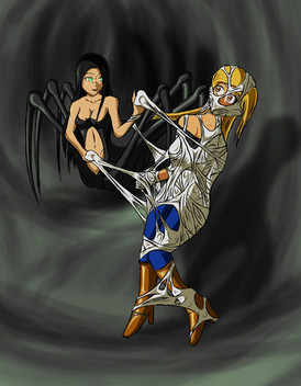 wow, that spider chic is really creeping me out..lol nice art by the way