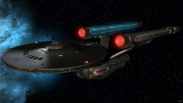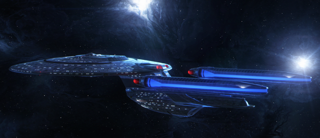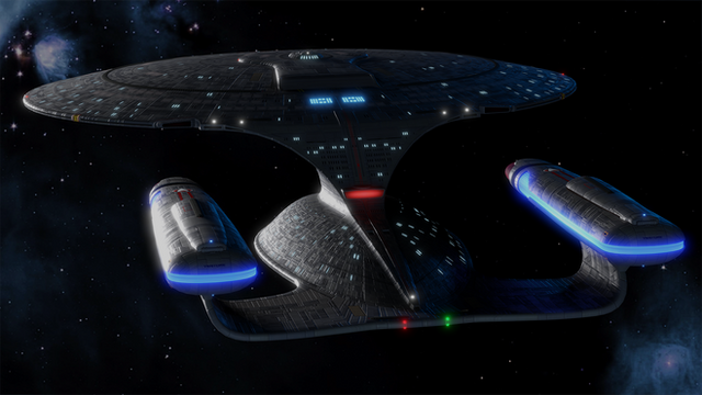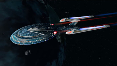 The Enterprise-E in all her glory.This is a screenshot from Star Trek Legacy.