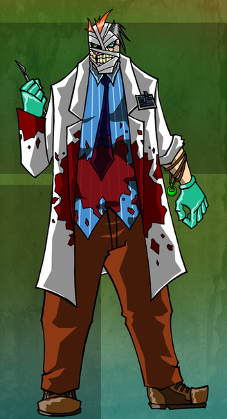 If I were to offer any constructive criticism, it's that his... lab coat? It causes there to be a rather big chunk of solid color. Maybe some patches or something to creak it up would help.