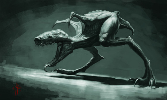 This is a very quick Zbrush sculpt, taken in to photoshop. I did a painting of a hellhound nearly 10 years ago, www.deviantart.com/mrtomlong/a…I thought it might be fun to redo it in zbrush. I could have spent a lot more time on the sculpt, anatomy etc.. but it was just a quick fun experimental concept piece to practice some of the techniques I've learnt recently.