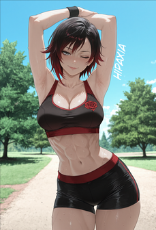 #alternateuniverse #animeart #bigbreasts #cleavage #digital #digitalart #fanart #fantasy #hot #kawaii #mangaanime #milf #wet #wife #workoutclothes #aiart #looking_at_viewer #blakebelladonna