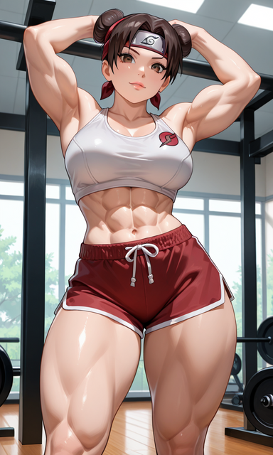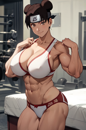 #alternateuniverse #animeart #bigbreasts #cleavage #digital #digitalart #fanart #fantasy #hot #kawaii #mangaanime #milf #wet #wife #aiart #looking_at_viewer #tenten #workout #tentennaruto