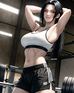 #alternateuniverse #animeart #bigbreasts #cleavage #digital #digitalart #fanart #fantasy #gym #hot #kawaii #mangaanime #milf #wet #wife #aiart #looking_at_viewer #inoyamanaka #workout #yamanakaino #gymclothes