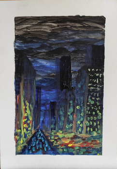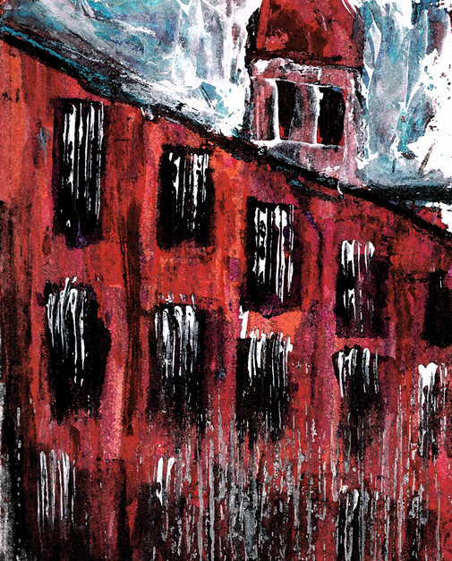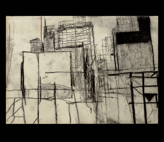 #acryliconcanvas #buildings #ink #roller